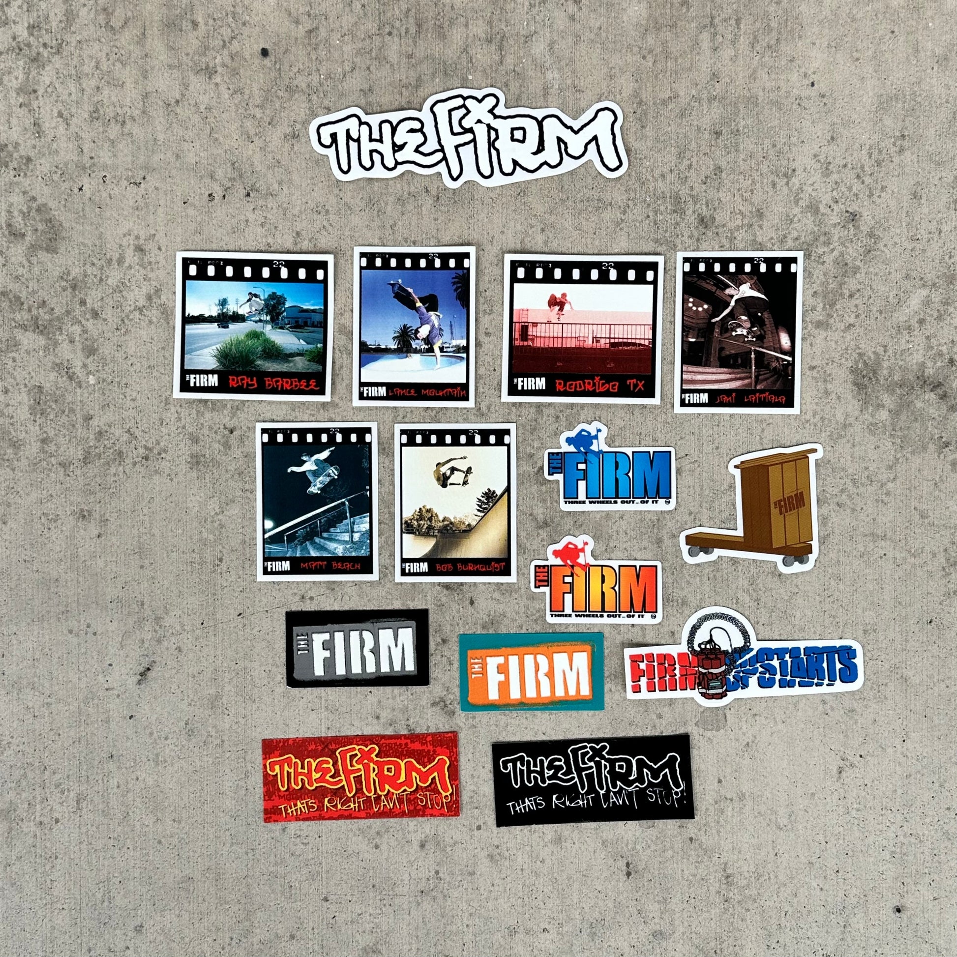All Original New Old Stock Vintage The Firm Skateboards Stickers One pack of 15 Assorted stickers.