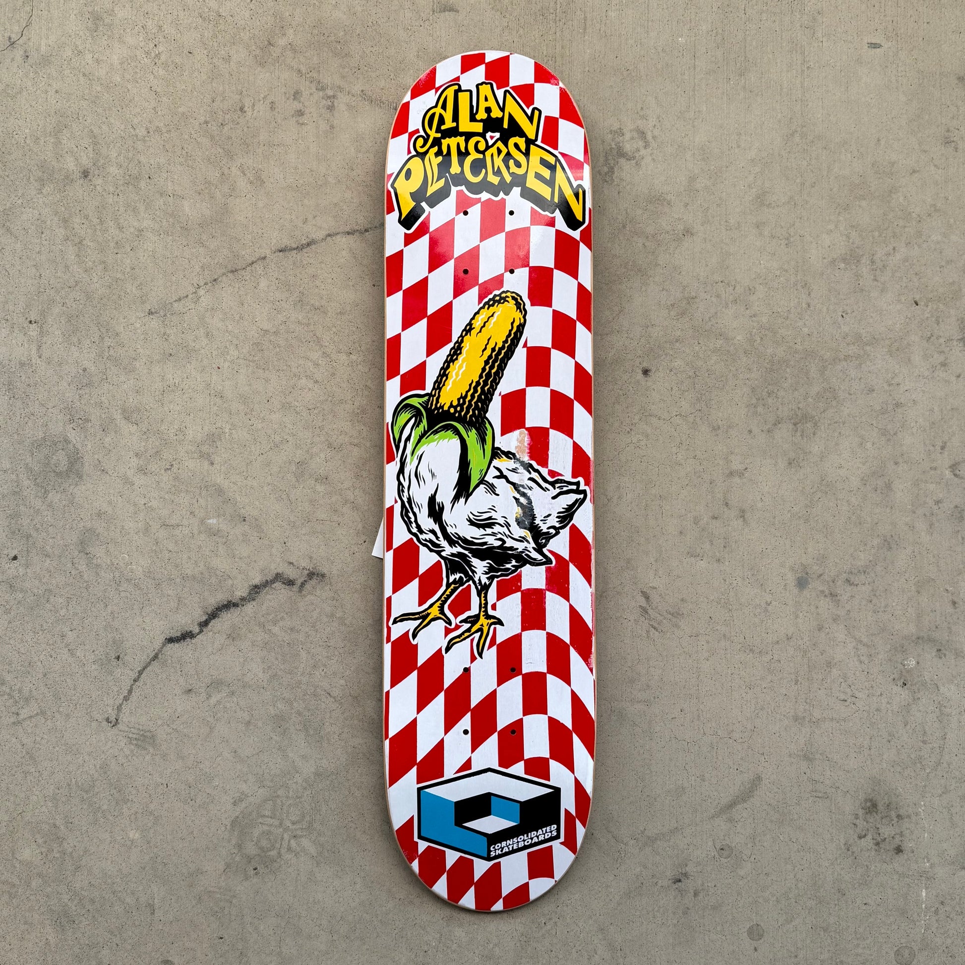 Art By Todd Bratrud. All Original New Old Stock Consolidated Skateboards Alan Petersen Corn Head Model. This was a print sample from the first 5 printed. May have some storage scuffs.